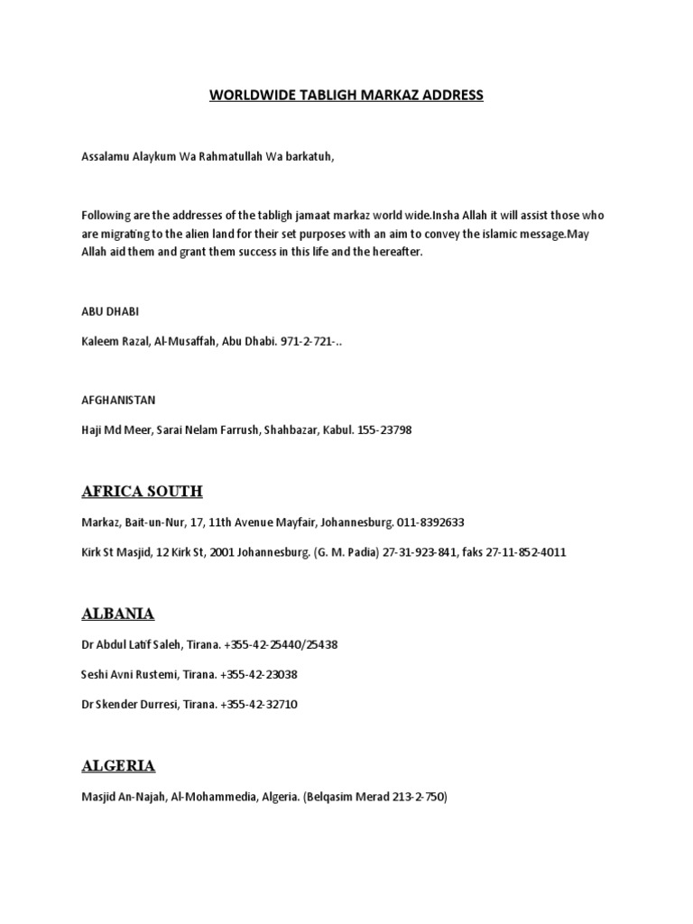 Worldwide Tabligh Markaz Address Pdf Mosque Abrahamic Religions